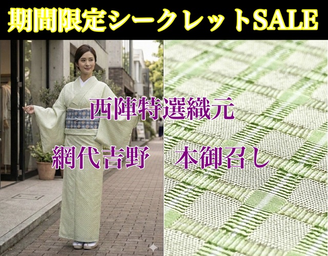 【明石縮】【明石ちぢみ】【夏着尺】【夏絣着物】【経絣】【立湧地模様 段絣】【根啓織物】【経済産業大臣指定伝統的工芸品】【絹100%】【問屋協賛SALE】【期間限定販売】【送料当店負担】