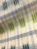 吉野格子の中に絣の技法で表現されたグリーンの柄がアクセントになりお洒落さが際立ち、そして上下の掠れ部分が民芸品らしい趣きを漂わせます。