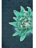 海の底のような深みの青緑色に咲く一輪の牡丹が印象的、しなやかでしっとりとした中にも強い意志を感じさせる大人の女性らしさを漂わせます。