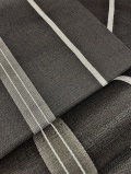 本品は黄八丈の基本3色の中でも希少性の高い黒をベースに灰色の縞が配されています。重厚感のある色合いと艶やかな光沢が洗練されたエレガントさともいえる独特の存在感を漂わせるのです。