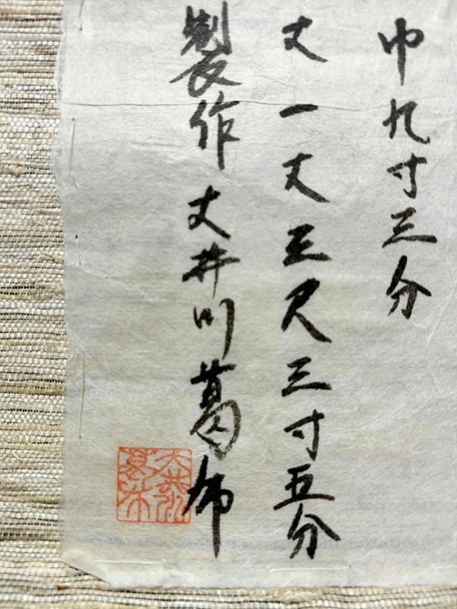 手先を半分に折らずに全て平らにして芯を入れて仕立て、手先から胴巻きの部分に裏地を付けません。