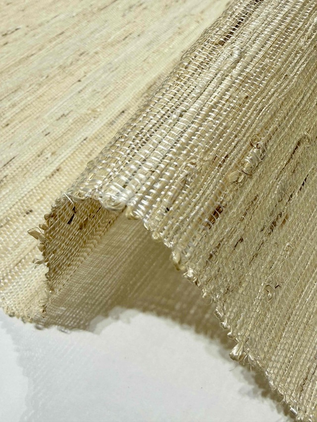 ザックリとした葛糸に対して絹糸のしなやかな風合いゆえに、硬さを抑えた布に仕上げられています。