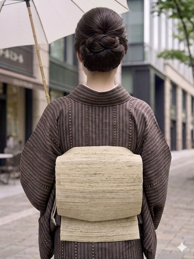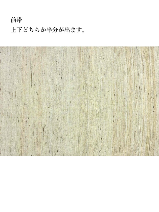 天然素材ゆえに季節を問わずオールシーズンお使いいただけます。また生成りの無地はお着物の色や柄を選ばず自在にコーディネートしていただけますので、お手持ちの紬や上布、木綿など様々な素材のお着物と組み合わせて着物通の装いをお楽しみ下さい。大変希少なお品ですのでお目に留まりましたらお手元にお向かえ下さい。