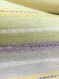 この帯を一目見て飛び込んでくるのが綺麗なイエローではないでしょうか。この黄色は刈安の染料が用いられています。