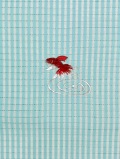 【夏半衿】【メーカー協賛SALE品】【金魚】【刺繍】【ストライプ】【紺/ミント】【日本製】【衿地:ポリエステル100%】【送料全国一律510円】