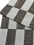市松模様に流水と縞が配された古典美漂うデザインを和テイストのカラーリングで染め上げられ、メリハリの効いた色のコントラストと相まってお洒落感溢れる帯周りに仕上げてくれます。