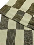 市松模様に流水と縞が配された古典美漂うデザインを和テイストなカラーリングで染め上げられ、メリハリの効いた色のコントラストと相まってお洒落感溢れる帯周りに仕上げてくれます。