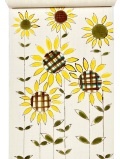 スーッと伸びる茎の頭にパッと咲く向日葵の花、イラストチックな描写にメルヘンの世界が感じられます。型絵染作家 岡田その子さんの作風は童話のような物語を感じさせほのぼのとした気分に誘うのです。