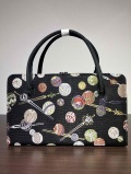 お出掛けやお茶席など和服シーンに活躍する利休バッグ。可愛らしい鞠とかんざしの柄が織り出されたお洒落なデザインの正絹帯地裂を側面に用いており高級感が漂います。