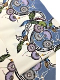 琉球紅型と聞けば沖縄の自然のようにパッと明るくカラフルな色使いのものを思い描く方も多いのではないでしょうか。その中にあって宮里さんの紅型染めはそれらとは一線を画する魅力があるのです。白とブルーグレーをベースにワイン・グリーンといったアースカラーが調和のとれた落ち着いた雰囲気をかもし出し 他の紅型作家さんの色とは明らかに異なりナチュラルな着姿に仕上げてくれるのです。