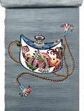 紅型染の第一人者 城間栄順作「抱瓶にトビウオ」。栄喜氏の抱瓶から泡盛を注いで古を想いながらトビウオを肴に亡き父(栄喜)と語り合う。沖縄の伝統と生活文化を表した意匠に静かに流れる時の流れを感じるのです。