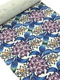 紫とブルーを基調とした色彩で花模様があしらわれ、可愛さの中にも大人の女性らしさを漂わせ、華やかさとしっとりとした帯周りを演出してくれるでしょう。