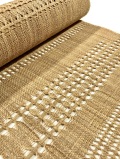 縦糸を捩り隙間を開けて柄を織り出す「捩り織」。本品は六通の柄付けで捩り織が施された大変希少なお品です。しな糸の素朴な味わいと工芸美を併せ持つ贅沢な布をご堪能下さい。