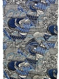 深く鮮やかな藍色グラデーションに目を奪われます。余計な色を排した藍一色の世界だからこそ、見る者の心に深く青い海の情景が広がっていくのです。幾何学的に表現された波頭の中に身を任せるように悠々と進む屋形船。人間国宝 玉那覇有公氏の紅型染は単なる模様ではありません。伝統的な技法で染め上げられたこの意匠は遠い琉球王朝の雅な風景を運んでくるのです。力強い波のリズムの中に屋形船という「人の気配」を添えることで意匠に温かみと情熱的な深みが生まれています。「粋」と「雅」を見事に調和させた玉那覇紅型ならではの贅沢な世界観をお楽しみください。
