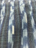 藍を基調とした天然色に揺らぎという曖昧な魅力に目を奪われます。幾種もの草木を用いて染色された木綿糸が複合的な滲みを見事に表現しています。白く染め抜かれた縦絣に自然の情景を思い浮かべ まるで鳥のさえずりが聞こえてくるような。「鳥のうた」こう名付けられた作品名の奥深さを考えてしまうのです。