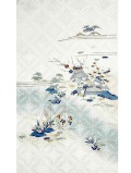 水辺に建物と草花の風景を現した伝統模様「茶屋辻」。江戸時代には大奥のお召し物にも用いされていた拡張高いお柄です。