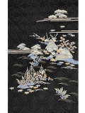 粋な黒地に趣深く美しいカラーリングで穏やかな茶屋辻模様が染め上げられました。