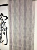 布を拡大してみると経糸には実に沢山の色が用いられているのが分かります。この多色使いにより一見すると紫や薄藍色に見える立湧文様が奥行とともに深みの有る色合いに見える秘密なのです。その色目は言葉で何色と申し上げる事が出来ず感じるしかないのかもしれません。