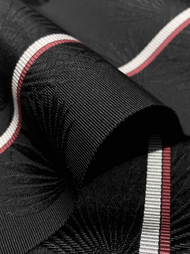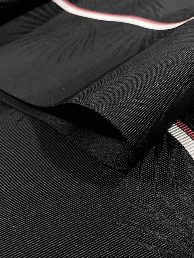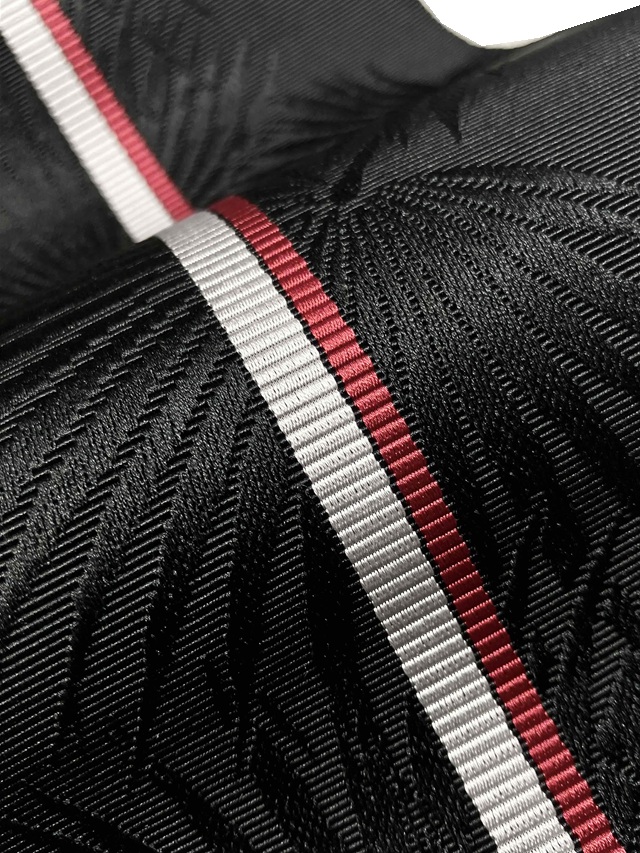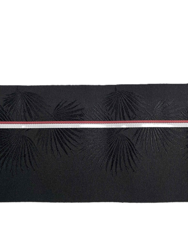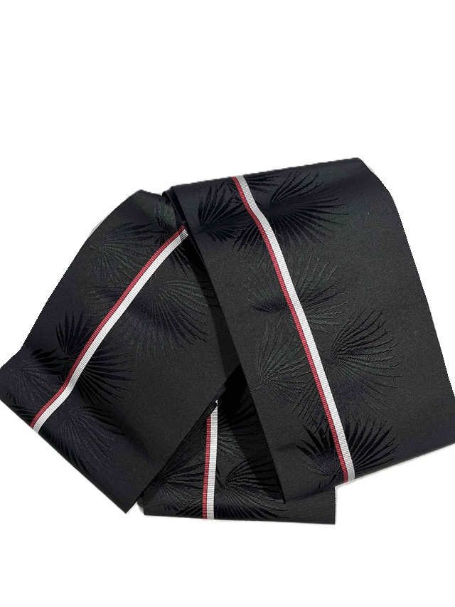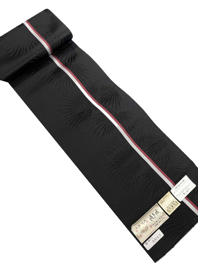 黒地に映えるシルバーグレーと赤の1本ラインが印象的。地模様に織り出されたボタニカル柄が豊かな表情を漂わせ、ギュッと締まる爽快感を実感していただけます。780年の歴史に裏付けられた確かな技術で製作された四寸単衣帯がカジュアルな装いを高級感あふれる着姿に仕上げてくれます。浴衣や紬、小紋といったカジュアル着物にオールシーズンコーディネートしてお楽しみいただけます。