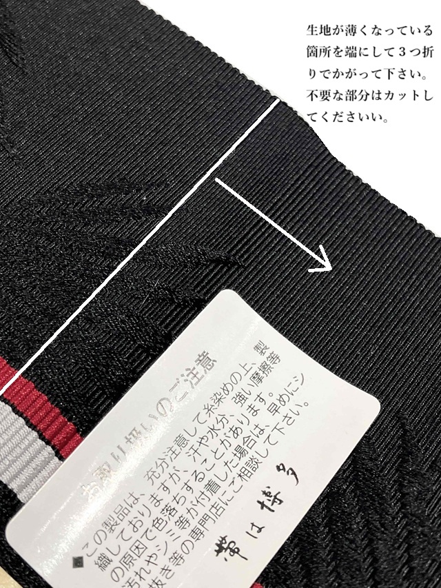 ご自身で縫われる場合は、端を三つ折りにしてかがって下さい。