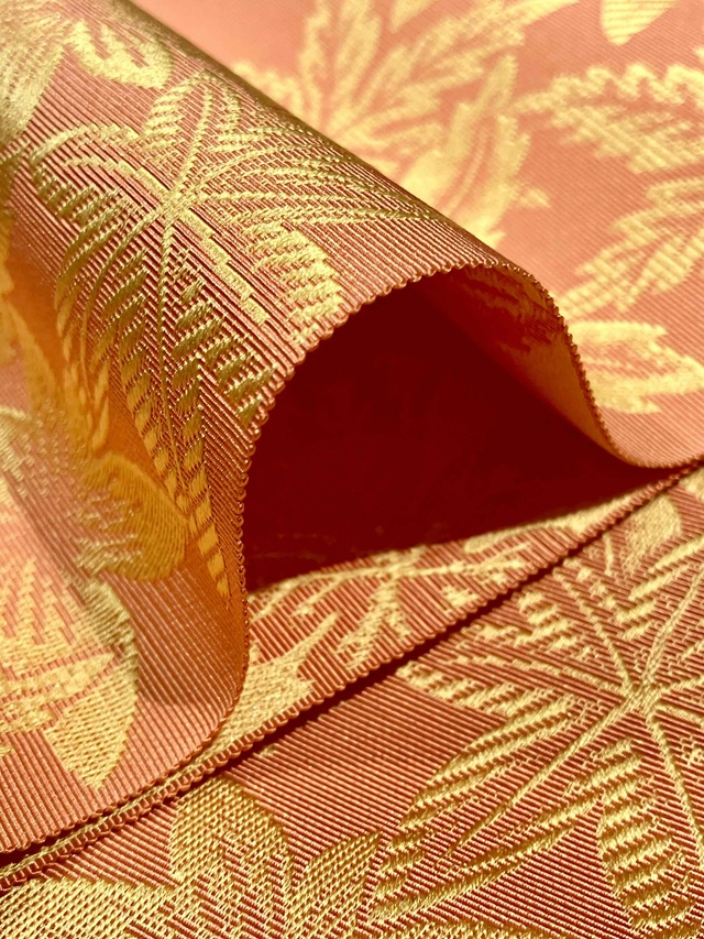 鎌倉時代 満田彌三右衛門という青年が宋の国に渡り持ち帰った織の技術が起源となった博多織。