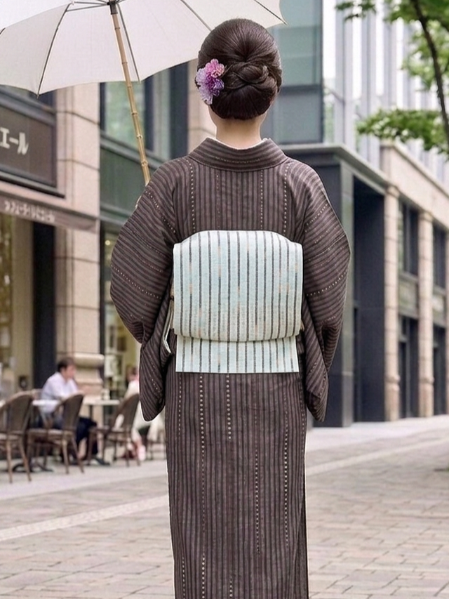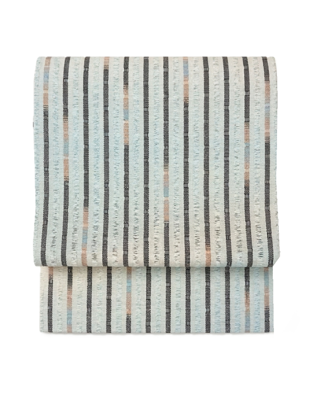 織り目が詰まった平織の中に隙間のあるストライプがあり、単衣から盛夏は勿論 袷シーズンにお使いいただいても違和感なくお洒落な装いをお楽しみいただけます。