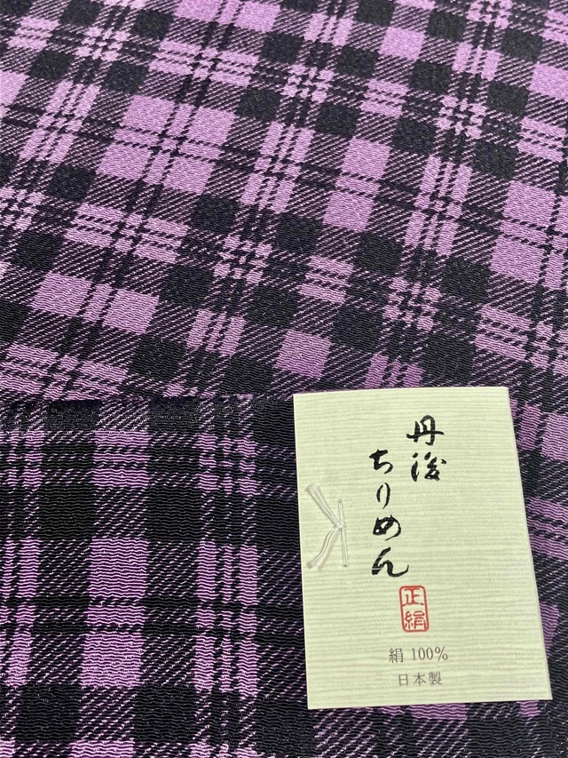 • 【帯揚げ】【丹後縮緬】【型染め】【タータンチェック】【赤紫】【絹100%】【日本製】【業者在庫放出品 掘出し価格】【送料全国一律510円】