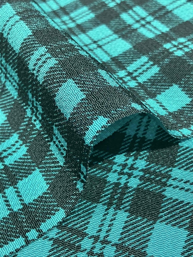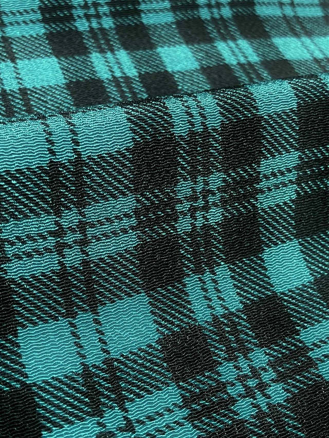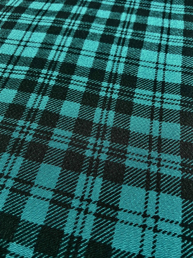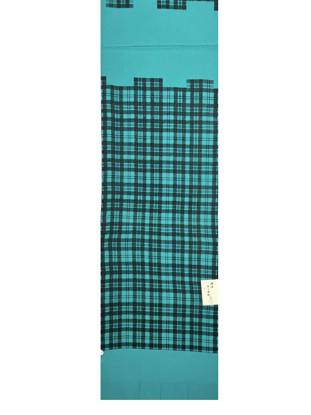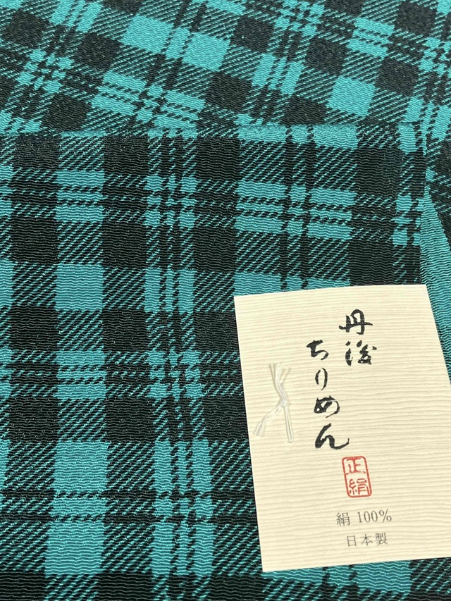 • 【帯揚げ】【丹後縮緬】【型染め】【タータンチェック】【ターコイズブルー】【絹100%】【日本製】【業者在庫放出品 掘出し価格】【送料全国一律510円】