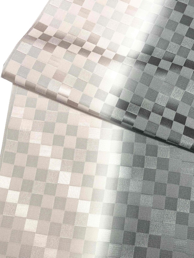 • 【帯揚げ】【丹後縮緬】【手染め】【二色染め分け】【くすみ薄ピンク/チャコールグレー】【市松地模様/チェック】【絹100%】【日本製】【業者在庫放出品 掘出し価格】【送料全国一律510円】