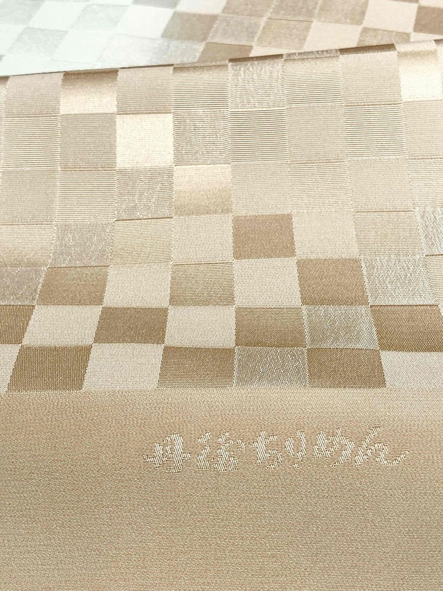 • 【帯揚げ】【丹後縮緬】【手染め】【二色染め分け】【くすみクリームオレンジ/シルバーグレー】【市松地模様/チェック】【絹100%】【日本製】【業者在庫放出品 掘出し価格】【送料全国一律510円】
