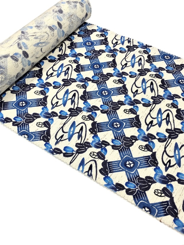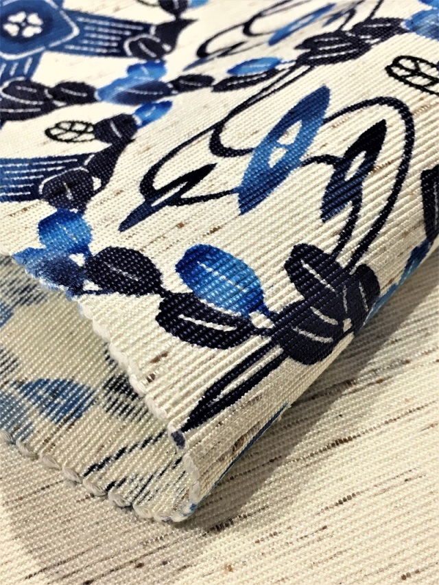 しなやかで且つしっかりとした風合いの米沢紬がもたらす締め心地の良さと、ぜんまいの民芸味溢れる味わい深さが雪国と南国を見事に融合させて城間紅型の魅力を更に引き立ててくれています。